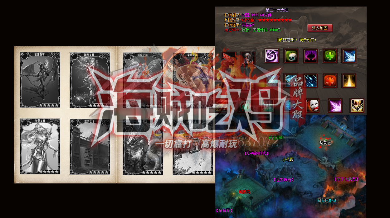 - 【游戏介绍】:|《新海贼吃鸡》本服BOOS种类多,增加了多种BOOS,缩短BOSS刷新时间,都有几率爆出终极。增加打怪乐趣